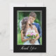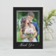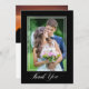 Merci à vos invités mariages avec cet élégant carte de remerciements 2 photos. Le design comporte une photo verticale et un script "Merci" élégant sur un arrière - plan noir. Le dos offre une deuxième photo horizontale et texte personnalisé pour votre message de remerciement personnel.