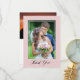Dites merci à vos invités mariages avec cet élégant carte de remerciements de deux photos. Le design comprend une photo verticale et un élégant script "Merci" sur un arrière - plan rose poussiéreux. Le dos offre une deuxième photo horizontale et texte personnalisé pour votre message de remerciement personnel.