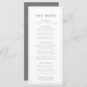 Moderne très simple graphique gris foncé et blanc des grands menus verticaux événement. Idéal pour un dîner simple, minimal ou moderne, mariage ou officiel d'entreprise. Modifiez avec vos propres détails du menu d'événements. Autres articles correspondants disponibles. Conçu par www.mylittleedenweddings.com