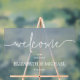 Un panneau d'accueil ACRYLIC présente un dégradé bleu roux transparent et les détails de votre mariage en lettrage chic. Changez pour n'importe quelle taille.