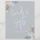 Ce design comprend un accueil mariage bleu floral simple, panneau d'accueil décoration de fête, cartes et cadeaux signage, une police de script de calligraphie design tendance, un texte de police de typographie fantaisie, classique invité d'accueil traditionnel, une calligraphie moderne simple minimaliste, une élégance simpliste minimaliste poussiéreuse, une image épurée et chic minimale, mariée traditionnelle classique et mariée