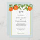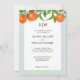 Elégante invitation à l'aquarelle d'agrumes orange, idéal pour les mariages d'été. L'invitation présente des illustrations aquarelles de fruits à l'orange et de feuilles avec une bordure d'eau pâle.