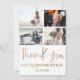 Carte de remerciement de mariage minimaliste moderne. Caractérisée par une grande calligraphie élégante en feuille d'or fausse et des espaces pour ajouter 4 de vos photos de mariage spéciales. Facile et amusant à personnaliser pour créer vos propres cartes de 'Remerciements' uniques.