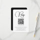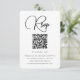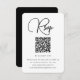 Cette carte de réponse mariage moderne dispose d'un emplacement pour votre code QR afin que les invités puissent facilement s'afficher sur votre site mariage. L'avant présente un design noir et blanc simple et épuré avec typographie de script en lettrage tendance. Le dos minimal est noir solide.