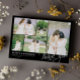 Beau carte de remerciements mariage en noir avec un collage photo auquel vous pouvez ajouter cinq de vos photos de mariage. Le Merci est écrit dans un magnifique script de calligraphie dans le coin inférieur droit, avec des boucles. Ajoutez vos noms et votre date et emplacement mariage dans une police élégante. Le dos est recouvert pour écrire un message personnel à la main.