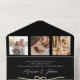 Simplifiez votre papeterie mariage avec cette élégante faire-part de mariage tout-en-un en or et noir. Doté d'un espace pour trois photos personnalisées, d'un coeur de cordes d'or romantique et d'un code QR scannable pour des RSVP faciles, ce design allie style intemporel et confort moderne. Parfait pour les mariages sophistiqués, cet agencement minimaliste en noir et blanc assure la brillance de votre histoire d'amour sans effort.