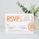 Un ornement de rosette orange vif est le point focal de cette carte de réponse typographique mariage. Le texte de l'invitation travaille autour de l'ornement pour en faire une pièce totalement unique qui donne l'ambiance d'un mariage moderne. Disponible en couleurs alternatives avec des produits correspondants.