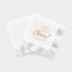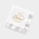 Les serviettes de mariage personnalisées "Cheers!" dans un script moderne avec un design monogramme personnalisé qui peut être personnalisé avec le nom marié et la date de mariage de la mariée et du marié. Un jet festif de bulles, de scintillements et de coeurs accentue le design typographique.