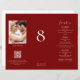 REMARQUE IMPORTANTE : Ce triplé est fourni à plat, SANS présélection. Vous devrez le plier vous-même. Pour vous aider à plier avec précision, des directives sont imprimées sur le dos pour les trois panneaux, plus un panneau extra fin sur le côté droit pour que vous appliquiez la colle pour coller le triple ensemble une fois que vous l'avez plié. Burgundy All in One Photo Mariage Menu Table No Trifold. Ce do-it-yourself triplé pratique combine votre numéro de table, Menu et Partager la section Amour avec un code QR pour que vos invités puissent scanner et télécharger leurs photos sur le site Web de votre choix. Le mot "Menu" est dans un script stylé. Personnalisez facilement le reste du texte au besoin et remplacez l'exemple d'image par le vôtre. Changez l'exemple d'URL du code QR à celui de votre propre URL et votre code QR sera automatiquement généré pour remplacer l'exemple de code.