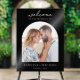 Personnalisez votre décor mariage avec ce panneau d'accueil mariage. Comprend votre photo personnalisée avec un design de typographie simple et élégant en noir et blanc.