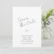 Avec cette élégante carte de mariage noir et blanc, vous pouvez annoncer votre histoire d'amour de façon classique. Cette faire-part fiançailles, au design minimaliste et à la façade contemporaine, est idéale pour les couples à la recherche d'un aspect sobre, élégant et classe. Pour un souvenir simple mais inoubliable qui transmet exquis votre célébration imminente, personnalisez-le avec vos noms et votre date mariage.