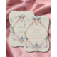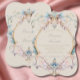 Chantez votre vintage avec ce somptueux faire-part de mariage à thème de l'époque vintage de la régence. Avec d'élégantes crêtes encadrées autour de vos noms. Crème douce aux teintes bleu violet et rose dans une teinte pastel reflétant le temps de régence. Conception de mariage personnalisée vintage et élégante.