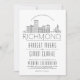 Un faire-part de mariage unique pour un mariage qui se déroule dans la belle ville de Richmond, Virginie. Cette invitation présente une illustration stylisée de l'horizon unique de la ville avec son nom en dessous. Cette information est suivie par vos informations de jour de mariage dans un style ouvert assorti. Au verso de l'invitation se trouve une couleur gris foncé qui vient compléter le look et le toucher. Tous les éléments individuels de la carte invitation sont déverrouillés, alors n'hésitez pas à modifier ou ajouter les détails nécessaires en utilisant la fonction de personnalisation. Vous pouvez ajouter une photo à l'envers et y ajouter un filtre noir et blanc. De plus, vous pouvez expérimenter avec les nombreux types de papier plus épais et les découpes disponibles. Des cartes RSVP, des bandes du ventre, des sacs fourre-tout, etc. sont disponibles. Amusez-vous à être créatif et à en faire votre propre !