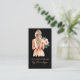 Elégante couturière robe de mariée carte de visite, avec l'aquarelle d'une fille dans une jolie robe tenant des fleurs, contre un arrière - plan noir. Personnalisez le texte en fonction de vos besoins professionnels. Une belle carte de démarcation pour votre entreprise de tailleur.