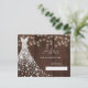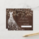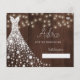 Diamants blancs brillants robe mariage sur un bois brun foncé grange avec cordes de lumières scintillantes arrière - plan faisant une rustique moderne élégante carte de conseil de douche nuptiale.