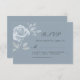 Cette carte RSVP minimaliste complète la suite de faire-part de mariage couleur bleu poussiéreux. Doté d'une seule rose aquarelle peinte à la main avec des feuilles sur un arrière - plan bleu poussiéreux, cet élégant design moderne offre un agencement propre pour répondre aux clients et sélectionner leur choix de repas. Parfait pour les couples qui préfèrent les accents floral sobres et intemporels. Customisez avec vos propres détails pour un ensemble de papeterie parfaitement coordonné.
