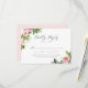 Élégant choix de repas à mariage floral cartes RSVP avec votre date RSVP, personnalisées accepte/décline le libellé, et options de menu de dîner avec bouquets d'aquarelle rose et de fleurs rousses avec feuilles vert vif. La carte de réponse à mariage floral revient à un arrière - plan rose pâle. Conçu pour coordonner avec notre collection de mariages floraux rose pâle.