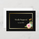 Cette carte de réponse mariage correspond aux Invitations de Mariage Roses Faux Parties scintillant Gold Stripe dans notre magasin. Il comprend votre texte personnalisé sur un champ de noir, et entouré d'un cadre doré mince. Un embellissement rose et rose pêche orne le bas à droite. Le verso de la carte contient vos champs de texte personnalisés en noir sur un arrière - plan blanc pour faciliter la cotation de votre répondant.