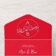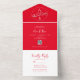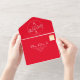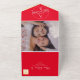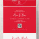Simpliste, minimaliste, moderne, contemporain audacieux rouge vif tout en un faire-part de mariage avec code QR, monogramme avec couple d'amoureux dessiné à la main, script manuscrit tendance et image personnalisée de l'arrière. Ajoutez votre photo, les détails du mariage et rsvp.