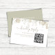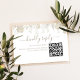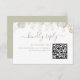 Ce design comprend une carte rsvp mariage, avec un style simple élégant, un code QR scannable, avec script de calligraphie, réponse simple, avec des détails du site et en ligne, avec typographie chic, et vert sage, vert