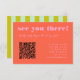 Cette carte de boîtier mariage RSVP à code QR dynamique et ludique présente une éclat de couleur ! Des polices rose vif et amusantes sur un arrière - plan rouge gai en font un plaisir à ajouter à votre suite d'invitation. Le code QR fait réagir une brise. Retournez-le à une autre surprise amusante - rayures vertes et bleues sur l'arrière. Associez-vous à la collection Blooming Joy faire-part de mariage.