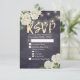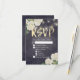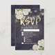 Modèles de la carte de réponse de mariage RSVP - Elégantes fleurs d'Hydrangée blanche et lumières à cordes sur Vintage Navy Blue Floral Linen Arrière - plan. Un design parfait pour votre grand jour. Tous les styles de texte, couleurs, tailles peuvent être modifiés selon vos besoins !