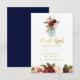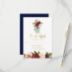 Cartes de réponse de mariage automnal élégant avec un fond blanc classique à l'avant et un fond bleu nuit à l'arrière, les deux pouvant être changés en n'importe quelle couleur, un pot Mason rustique, une étiquette avec les initiales du couple, un affichage floral aquarelle de style bourgogne, rouge marsala et blush, et un modèle de RSVP de mariage moderne.