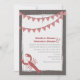 Un faire-part de mariage rustique sur le thème de la mer avec l'illustration d'un homard en bas à gauche. En vichy rouge au sommet. L'Arrière - plan est en bois de barnwood. Personnalisez le texte gris et rouge avec les détails de votre occasion. L'expression est de marié et marié.