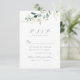La carte RSVP de mariage rustique est dotée d'une aquarelle, d'une végétation botanique eucalyptus et d'une police et d'un script chic moderne, élégants et romantiques, idéal pour les mariages rustiques modernes, mariage botanique dans le jardin et mariage campagnard boho. Voir toutes les pièces correspondantes dans la collection.