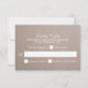 Ces cartes RSVP sont parfaites pour tout couple qui planifie un mariage campagnard romantique. Le design est composé d'un arrière - plan rustique à effet kraft avec une élégante formulation blanche. Le design simple peut être personnalisé pour votre événement spécial et sera la carte de réponse parfaite pour toute soirée rustique chic à thème, y compris : douches nuptiales, fiançailles, wedding showers, fêtes d'anniversaire et bien plus encore.
