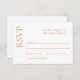 Cette carte de réponse mariage simple et de bon goût, parfaite pour un thème mariage agrumes, présente une esthétique moderne et un design élégant et minimal. Un choix de police classique présente un sens général de simplicité et de sophistication avec du texte orange d'agrumes sur un arrière - plan blanc propre. Des produits correspondants sont disponibles pour rendre la planification de votre mariage une brise. Personnalisez cette carte avec la date de réponse requise.