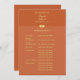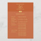 Le programme de mariage en terre cuite et en or comprend la fête de mariage et l'ordre de service. Design élégant avec des couleurs en terre cuite et or. Customisez le texte à l'avant et à l'arrière du programme. Grande journée de papeterie et parfait pour les couples utilisant la terre cuite comme couleur mariage. Utilisez le modèle pour créer votre propre programme de mariage en terre cuite et en or.