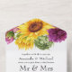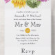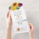Des tournesols et des dahlias boho rustiques sont en faire-part de mariage dans les teintes de prune bordeaux et de soleil.