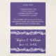 Les cocktails mariages signature sont les plus chauds de la tendance et cette carte de recettes de boisson Ultra Violet fait un bon souvenir pour vos invités. L'avant de la carte peut être customisé avec la recette de cocktail de votre couple si vous le souhaitez ; le dos de la carte contient les noms de la Mariée et de la Salle et la date du mariage imprimé en blanc sur un arrière - plan violet profond solide. Le design original de guirlandes de doubles vignes et de feuilles crée une bordure simple avec une touche de romantisme. Cette carte de cocktail signature Ultra Violet est un ajout unique et réfléchi à votre réception de mariage.