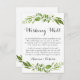 Envoyez vos cartes de souhaits de bien-être à votre mariage avec nos cartes d'encarts de verdure rustique. Le libellé est entièrement personnalisable - si vous avez besoin de changer la police, la couleur de police, la taille ou le placement des zones de texte, il suffit de cliquer sur le bouton "Cliquez pour customiser plus loin" pour changer ces choses. N'oubliez pas de consulter notre vaste sélection d'articles de coordination en parcourant la collection Rustic Greenery Leaf Mariage!