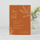 Invitez vos amis et proches à une célébration de mariage virtuel avec ce faire-part élégant et chic qui présente une palette de couleurs terracotta avec un design de feuilles esquissées. Personnalisez-le avec vos propres détails de mariage.