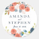 Une belle illustration orne cet autocollant mariage à thème Printemps ou Été qui est orné d'abricot et de fleurs de corail ranunculus, fleurs de cerisiers rousses et roses, bourgeons floraux bleus et verdure assortie. Coordination du motif de bande d'abricot à l'arrière. Disponible en option de format supplémentaire. Le design tendance et contemporain du jardin est parfait pour les mariages du printemps, de l'été ou de l'extérieur. Coordonné avec beauté avec toute notre gamme de produits et d'invitations "Wild Garden".