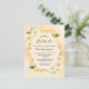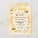 Elégante et amusante invitation à la douche nuptiale. Jaune, arrière - plan blanc avec un motif de nid d'abeille. Avec un cadre géométrique en faux or. Décoré d'un jaune clair, de fleurs de fleurs tropicales crème, d'hibiscus et d'abeilles jolies. Avec le texte : Mariée à Abee et le nom de la mariée sur le devant écrit avec un script de style manuscrit moderne. Lettres noires. Dos : motif jaune peigne blanche et une abeille. Conseil : Si vous ne voulez pas qu'il ressemble à une carte postale, cliquez sur customiser, allez à l'arrière et retirez le séparateur et le timbre postal.