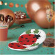 Ein roter Marienkäfer (Marienkäfer) ist zu Hause in einem Flecken des grünen Herz-förmigen Klees. Dieser helle, bunte PapierTeller gibt eine große Erklärung an jeder möglicher Geburtstags-Party- oder -babydusche ab. Jeder wundert sich, wo Sie solchen schönen, einzigartigen Teller fanden.