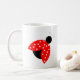 Kaffeetasse mit einem Marienkäferentwurf im Schwarzen, rot mit weißen Tupfen