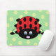 Dieses Cartoon mousepad kennzeichnet einen niedlichen roten Marienkäfer gegen einen grünen Hintergrund mit gelben Blumen. Sie können die Hintergrundfarbe des mousepad leicht besonders anfertigen oder das Blumenmuster entfernen, wenn Sie mögen. Eine nette Geschenkidee für Tier- und Naturliebhaber.