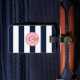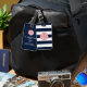 Marine-blauer Streifen mit rosa Gepäckanhänger