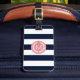 Marineblau- u. -WEISSstreifenmuster mit rosa Lorbeer-Kranz-Logomonogramm. Personalisiertes Gepäck etikettiert und auch bringt die verfügbaren Passhalter zusammen: