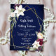 Lys blancs rose de Bourgogne sauge verdure bleu marine arrière - plan or géométrique cadre modèle floral faire-part de mariage avec code QR RSVP à l'arrière.