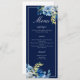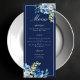 Marine Bleu Flore Élégant Dîner de mariage Menu