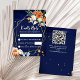 Roses orange et blanc sauge eucalyptus vert marine bleu arrière - plan or géométrique cadre de mariage floral RSVP carte QR code RSVP à l'arrière - si pas nécessaire - juste supprimer ces champs de la zone de texte.