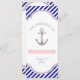 Bleu de marine, rayures blanches, cérémonie de mariage nautique d'ancrage et programme de fête. Un élégant design motif rayé avec des rayures en bleu marine, blanc, une ancre grise avec un coeur et une corde d'amour rose doux et votre texte dans un cadre avec une bannière rose. Moderne mais avec un look vintage dans un sens. Vous pouvez modifier la couleur arrière - plan et la couleur du texte en choisissant parmi plus de 200 couleurs à partir du graphique en couleurs Zazzle. Ce design élégant est un modèle entièrement personnalisable et fait partie d'un ensemble mariage parfait pour un mariage nautique d'été ou de plage.