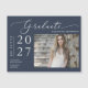 Yay ! Votre collège, lycée, collège/université, école de technologie, ou étudiant de programme d'études supérieures l'a fait et est diplômé! Célébrez l'un des moments précieux de leur vie et envoyez cette carte magnétique faire-part de graduation. L'aimant présente un style minimaliste moderne simple et élégant, avec de beaux scripts de calligraphie sur un arrière - plan bleu marine et la photo du diplômé. Il suffit de customiser et de remplacer le texte et les photos dans la zone de personnalisation. Remarque : les phrases élégantes du script de calligraphie "diplômé" ainsi que les lignes et autres illustrations graphiques et éléments ne peuvent pas être modifiées, supprimées ou déplacées. Elles sont réparées.