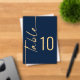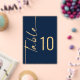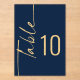 Marine Blue & Gold Mariage Acrylique Numéro de tableau. Le numéro de table se trouve dans un script tourné défini le long de la gauche. Personnalisez chaque numéro et chaque nom d'invité et ajoutez-les individuellement à votre panier.