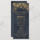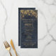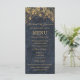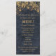 Complétez votre table avec cet élégant menu de mariage de la collection Rustic Glam Mariage. Conçu avec des lustres dorés sur un arrière - plan en faux-denim de marine profonde, ce menu vertical offre un magnifique mélange de charme rustique et de raffinement du soir. L'aménagement comprend des sections pour les pains, les entrées et les côtés, clairement présentées pour le dîner en assiette ou les repas sous forme de buffet. Idéal pour les réceptions de grange, les mariages de vignobles ou les célébrations officielles de country club, cette carte s'harmonise parfaitement avec vos invitations, vos affiches et vos cartes RSVP. Customisez avec vos options de repas et les détails du mariage pour une touche polie et personnalisée que vos invités apprécieront.